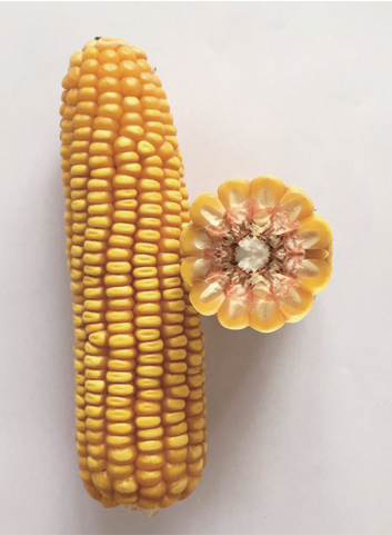 特征特性:幼苗葉鞘紫色,葉片綠色。株型半緊湊,株高232cm,穗位高79cm,全株葉片數15-17片,雄穗分枝數4-6個,花藥黃色,穎殼綠色,花絲紫色;穗錐形,穗軸紅色,穗長14.6cm,穗粗4.5cm,軸粗2.6cm,穗行數14,行粒數33粒;籽粒黃色、半馬齒型,千粒重323.6g,出籽率89.3%;成株根系發(fā)達,莖稈堅韌,抗倒伏。高抗瘤黑粉病、莖基腐病和絲黑穗病,中抗大斑病。甘肅春播生育期90-95天,屬極早熟品種。適宜在海拔1800m以下,≥10℃有效積溫達2200℃以上,雨量充沛或有灌溉條件的西北春播區(qū)種植。 產量表現:2015年品比試驗在密度6000株/畝下,平均畝產達899kg;8000株/畝下,平均畝產達947kg。 |